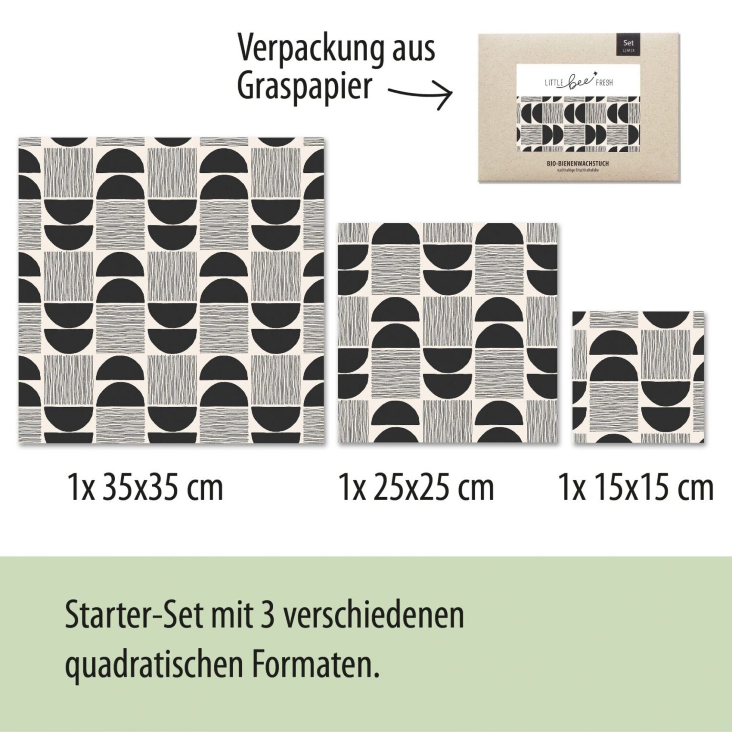 Bio-Bienenwachstücher Starter-Set (“L/M/S”) – Monochrom
